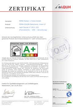 • 歐陸檢測voc A+認證 émissions dans l'air intérieur